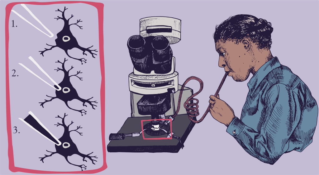 Though it took one and a half centuries to develop, this same patch-clamp technique is still what researchers use today to approach many different questions about how the brain works. In this age of rapidly developing technology, there are still scientists sitting in lab slurping up neurons with their straws to get a quick listen into the inner workings of the brain. Using this humble technique, they’ve been able to discover new types of neurons, map the connections of the brain, identify early predictors of Alzheimer’s disease, develop new electrical treatments for diseases like Parkinson’s disease, and so much more.