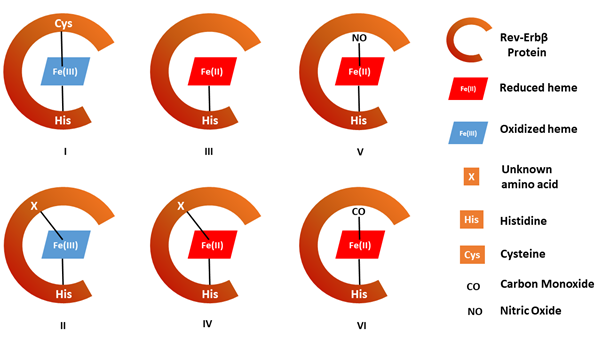 We believe this crucial observation can help explain an apparent anomaly for proteins that exist in the oxidized state but at the same time have been shown to function as gas-sensors like Rev-Erbβ. These findings also pave the way to explore the influence of signaling gases in mediating the circadian rhythm.