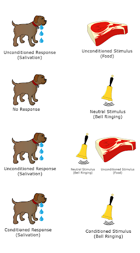 So, what is associative learning? This type of learning is also known as classical or Pavlovian conditioning and was famously described in the experiments involving Ivan Pavlov’s dogs. During associative learning, a signal (also called a cue or stimulus) that previously did not have meaning becomes associated with a meaningful event. Take the sound of a bell– by itself, it has no meaning to a dog. However, if you ring the bell every time you give the dog a juicy piece of meat, like Pavlov did, the dogs will learn that the bell is associated with the delicious meat. That is, the learner will begin to associate the previously neutral stimulus with a meaningful experience or object. Eventually, the dogs started to have the same reaction to the bell as they had to the meat. They started salivating in anticipation of a delicious meal. After associative learning has occurred, giving the learner the unconditioned stimulus (bell) will cause the same reaction that they originally had to the meaningful stimulus (meat).
