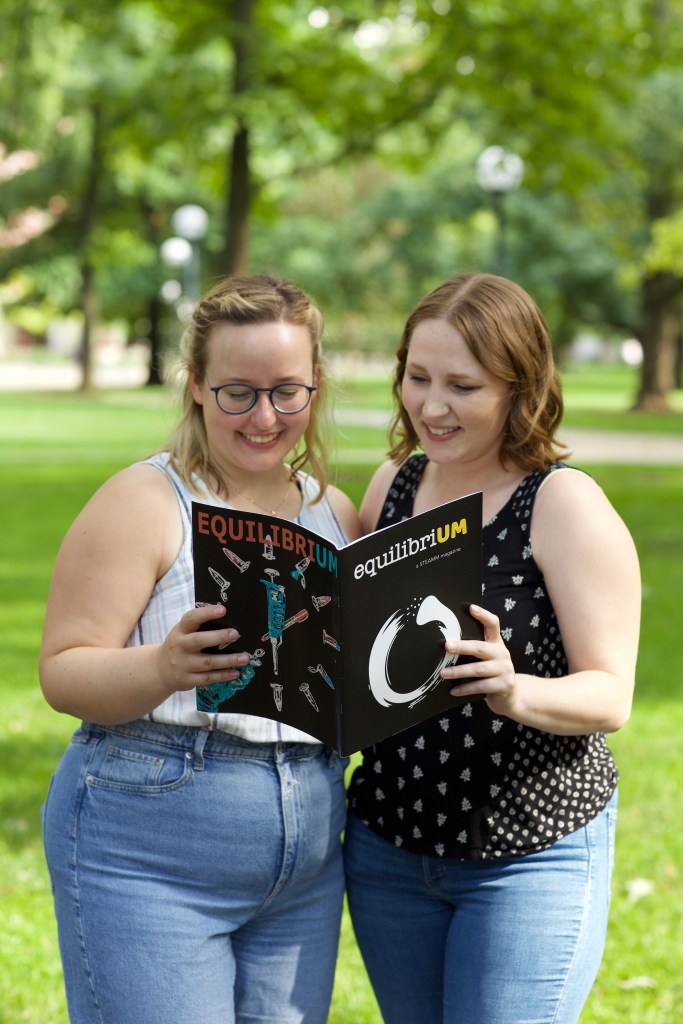 And I (Christina) remember seeing the printed first edition one day sitting in an office and thinking to myself, I sure hope I can get involved with that the next time they do it. Fast forward to August 2022 — Jenn and I were setting up for an uncomfortably warm recruitment event under a tent on the Rackham lawn, stacking copies of the first edition of EquilibriUM to give away to incoming students. The magazine had been on my mind since I first got involved with MiSciWriters, but previous leadership teams seemed (rightfully) daunted by the task of restarting it. Once Jenn and I — two humans notorious for over-involving ourselves in this organization — joined the leadership board, it felt like the time was right. Individually, we were nervous about taking on such a big task alone. But since we were both excited about this magazine, we thought, well, what’s one more project, and decided to take it on together, starting with learning where that sneaky “s” goes in the correct plural form of our position: editors-in-chief.