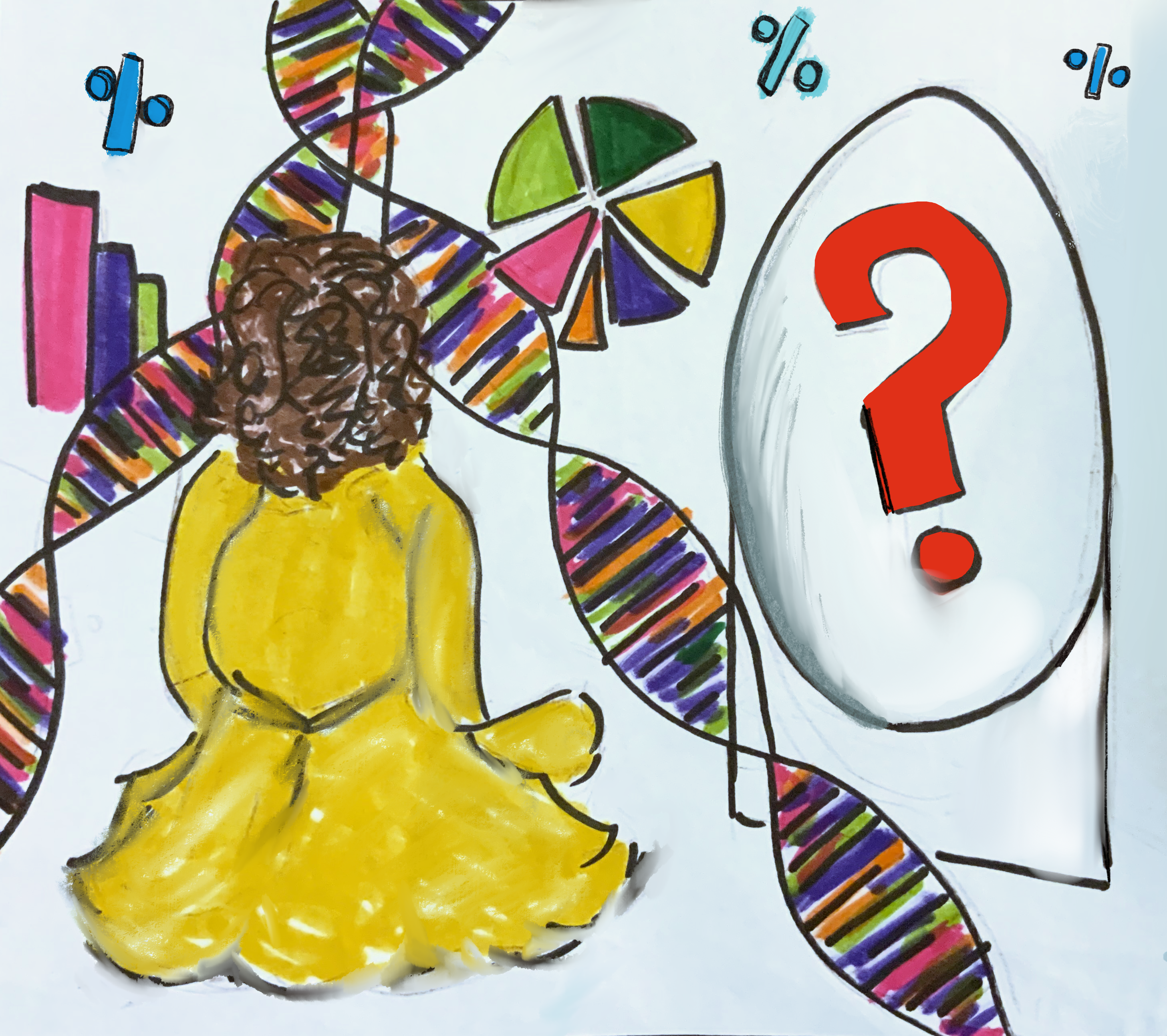 Genetics, like most other fields of science, is frequently seen as objective because it uses quantification (Porter, 1995). Numbers have an inherent assumption of objectivity: “There are three glasses on the table” is hard to refute. Once the genetic data is generated, statistical analysis can create associations between individuals with similar DNA sequences. This is how companies describe a person’s genetic data as “80% European, 20% African,” or as “having a 60% risk of disease.” However, these numbers are constantly in flux – any new individuals or populations participating can influence the estimates – and are based on a small subset of individuals whose genetic information we already have, which is not representative of everyone.