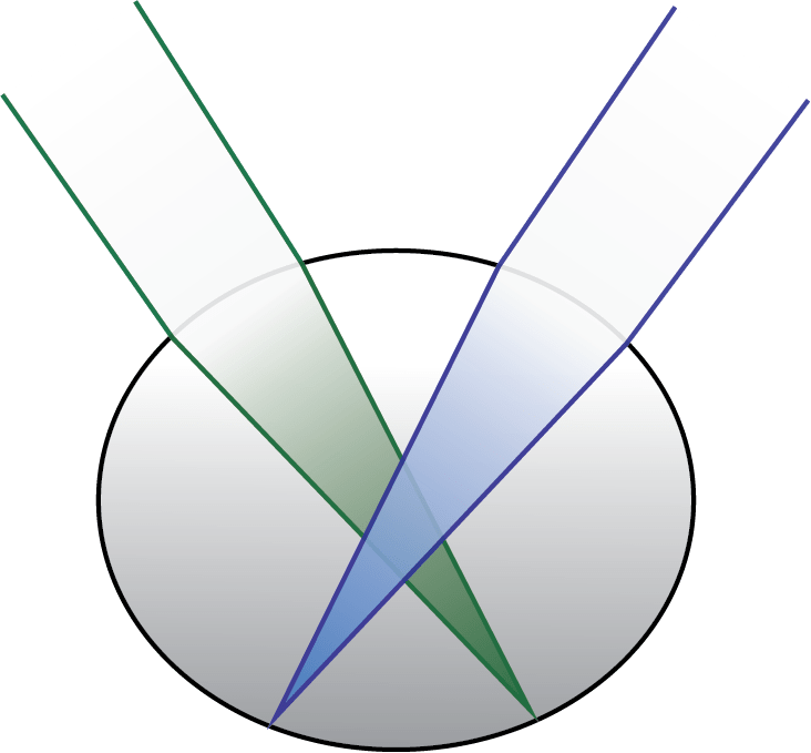 Spinoza’s paradigm-shifting notions did not stop at religion and theology but extended into how he considered the interplay between vision and the mind. Instead of parallel rays focusing to one ideal point (like Descartes), for Spinoza, the eye was able to focus light to a variety of axes. Where Descartes’ single-axis lens represented his belief in clarity for clarity’s sake, Spinoza thought that vision represented many perspectives being focused within the eye (Fig. 2). In rejecting the single-axis model and its analogy of center-focused human vision, instead Spinoza suggests that with vision occurring across a field of foci, the periphery has no less truth than the center. “It is certain that, in order to see an entire object, we need not only rays coming from a single point, but also all the other rays that come from all other points. And therefore it is also necessary that on passing through the glass, they should come together in as many other foci.”6