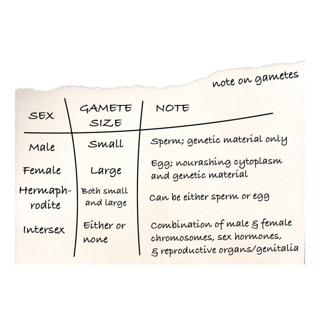 Before we delve into sexual diversity, we must ask: what defines male and female? Biological sex is defined by the size of the reproductive cell (gamete) the organism produces (Table 1).5