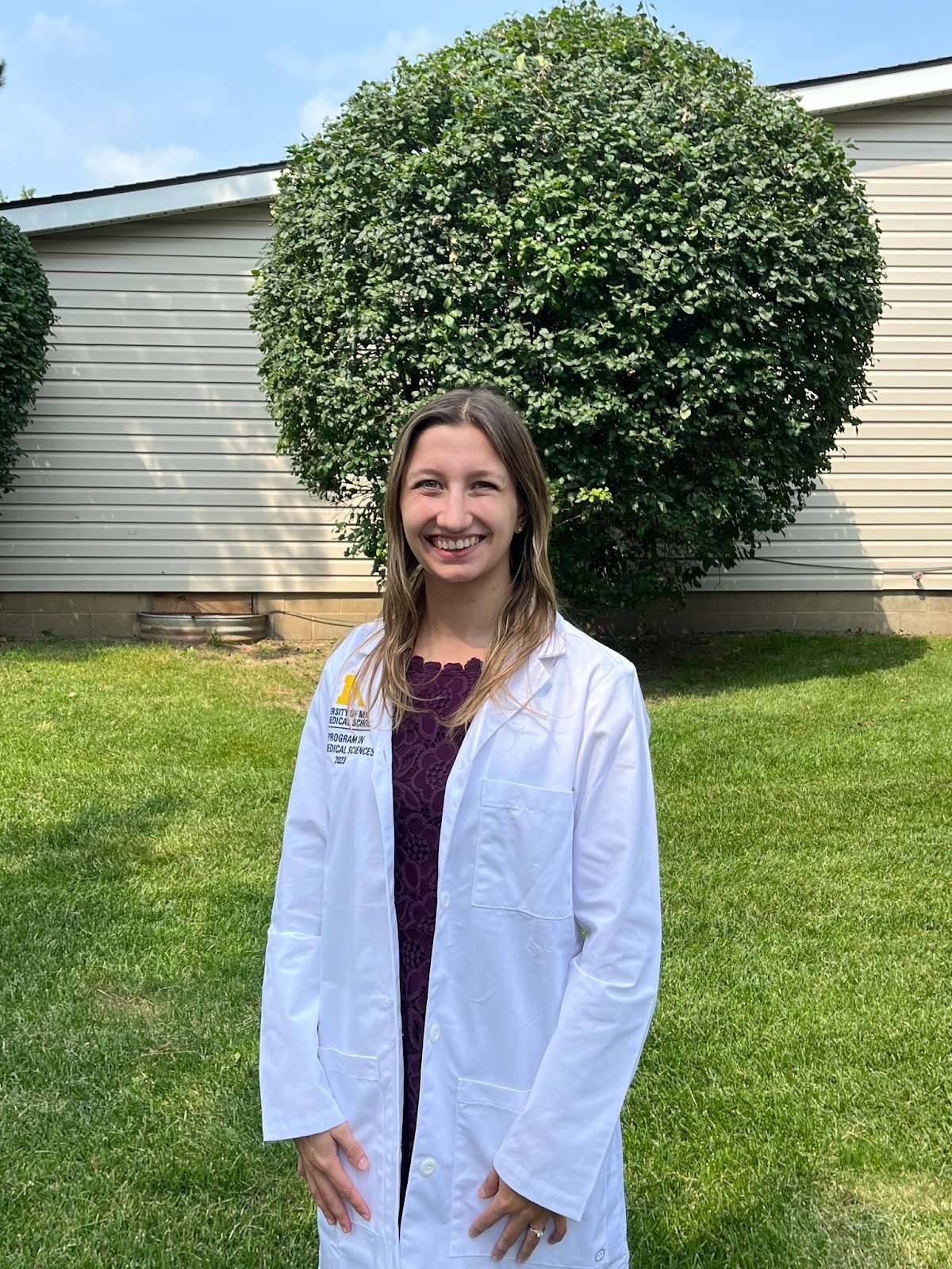 Brenna Saladin is currently a 3rd year PhD graduate student in the Biological Chemistry program. She performs research in the lab of Dr. Jailson Brito Querido, where she uses cryo-em to study the process of translation initiation. Outside of the lab she is the Communications Chair for the Biomedical Graduate Student Government (BGSG) and enjoys writing and editing for MiSciWriters. Brenna is originally from Minnesota, where she attended the University of Minnesota – Twin Cities and received her bachelors in science for a double major in Biochemistry and Neuroscience. In her (sparse) free time Brenna enjoys playing soccer, watching medical TV dramas, and going out for food and drinks with her lab mates.