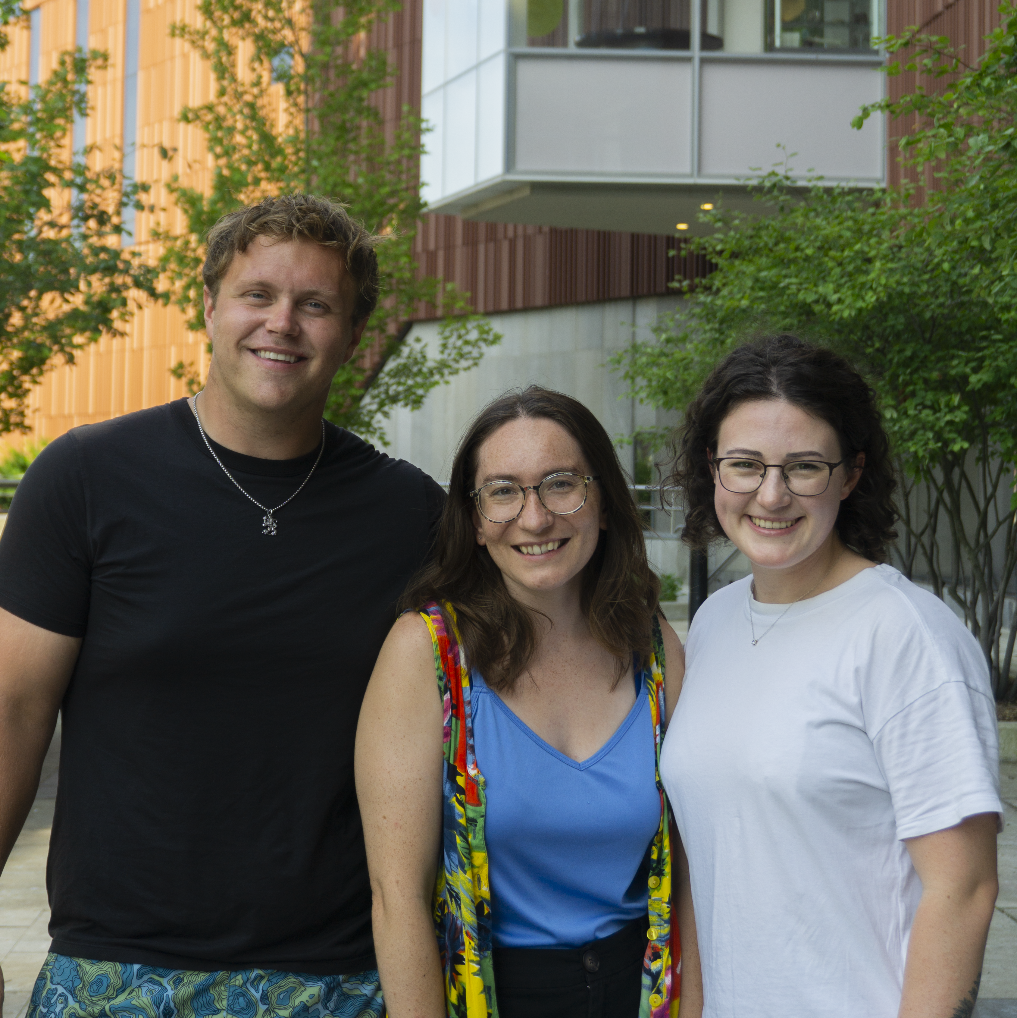 Among other things, Kate Giffin (center) is a PhD candidate in neuroscience. In the lab, she studies how severe infections can lead to long-term brain issues like dementia. She is passionate about telling scientific stories through unexpected genres, particularly poetry, to expand the way people think about science and the world. When Kate is not marveling at the everyday wonder of the brain, she is probably outside marveling at some strange plant.