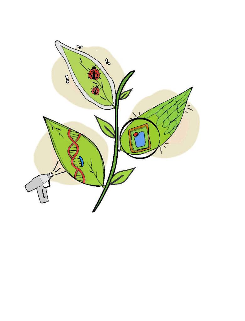 The clouds are darkening on the western horizon, and a faint promise of rain hangs in the air. You look out at the cornfield, taking in the greenery. Then you notice – it’s not just corn. Interspersed with the ripening stalks are rows of low soybean plants, their pods spilling over the dark soil, and in the distance, you can see a few orderly patches of sedge and ryegrass. This farm is intercropping – growing multiple crops together on the same land. Intercropping is an ancient practice. For centuries in pre-Columbian America, the “Three Sisters,” corn, beans, and squash, were grown in the same fields, each plant strengthening the others.36-38 Today, intercropping is gaining traction among many farmers – it raises productivity, improves nitrogen fixation, and strengthens the soil microbiome, making it harder for pathogens to spread.39-41 One study from the University of Florida found that intercropping even reduces crop loss to insects.41 It’s not entirely clear why, but one hypothesis is that most destructive species are “specialists” in one crop; in multi-cropped fields, less destructive “generalist” insects are at an advantage.42 Intercropping may also provide a level of “biological control,” allowing the natural enemies of pests, like predatory insects, to keep them at bay.43 This process is key to regenerative agriculture, farming practices that mimic natural ecosystems. It works hand-in-hand with a new high-tech solution – plant immunotherapy. Derivatives of CRISPR, the Nobel Prize-winning gene editing technology, can be used to target viral DNA when it enters plant cells, or splice out the genes that viruses and fungi use as footholds to enter.44 Early results are promising – in crops as diverse as cucumbers, rice, and tomatoes, these methods induce resistance to common pathogens.44 Another strategy uses tiny interfering RNA molecules that mediate viral resistance,** engineering them into plant genomes to recognize and attack viruses as they try to replicate.45 Crops can even be modified to produce animal antibodies,46 which our immune systems use to recognize viruses.***