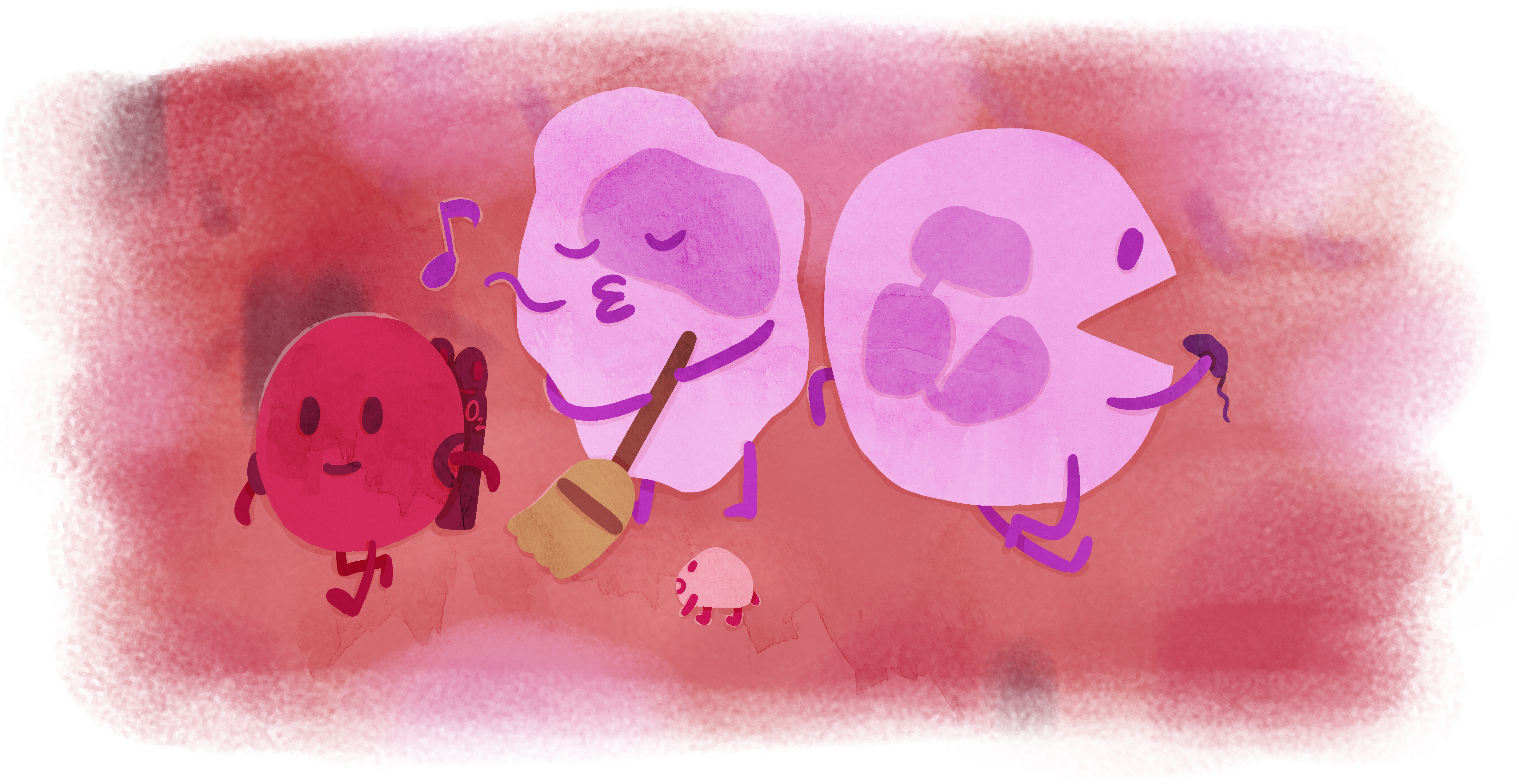 Pippa quickly learned it was best to drift along the periphery of the blood vessels, where she could follow Rule #1: Stay alert and ready and scout for any sign of trouble.3 Plus, staying off to the sides meant she didn’t have to wrestle with the red blood cells, who liked to hog the center lane.