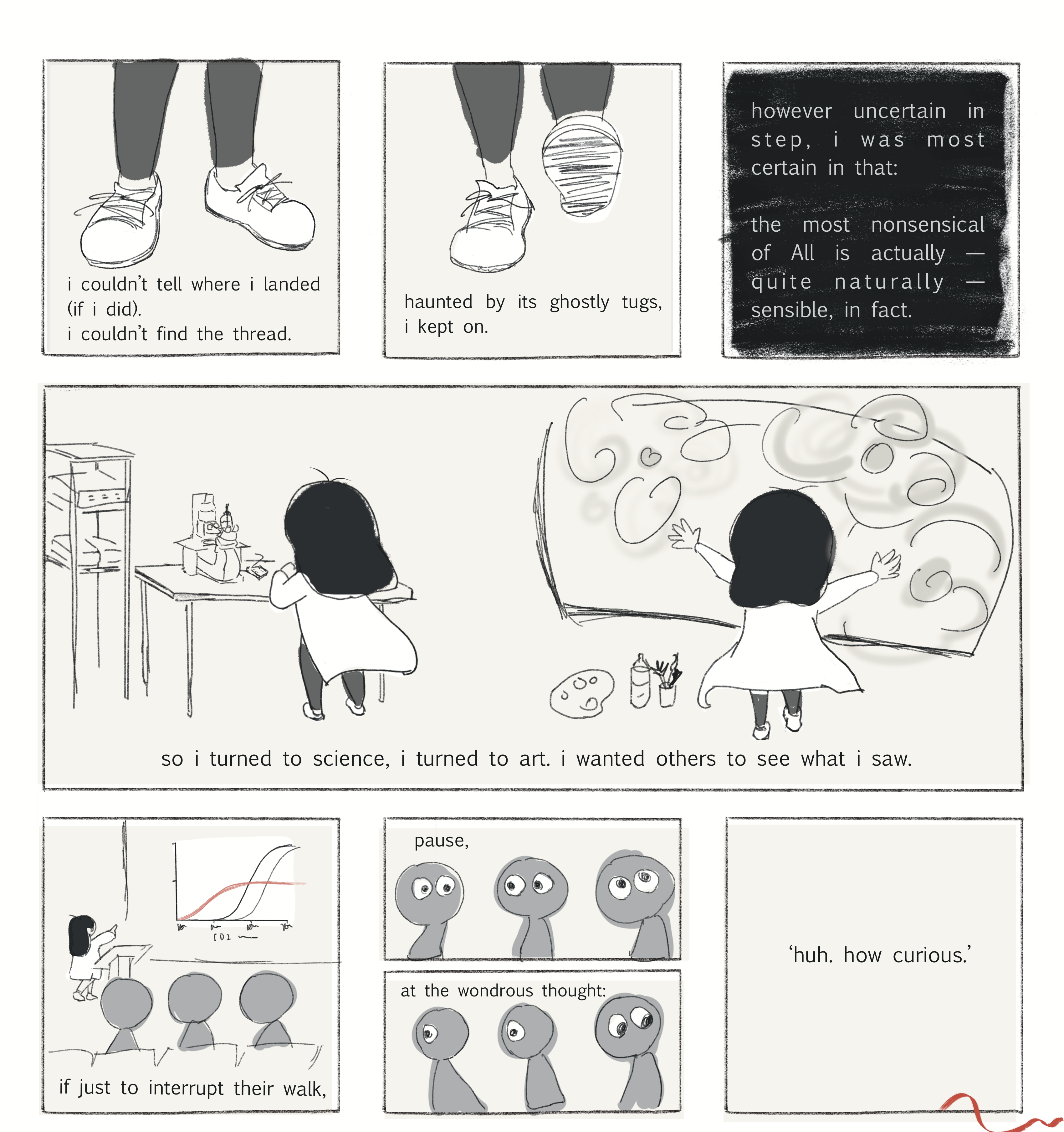 Many wonders are left unanswered, but many too, sprout a drive for artistic, academic, or whimsical creation. You will find a wide variety of mediums and formats in this magazine that highlight our authors and illustrators’ unique methods of creation – paintings, comics, short stories, explainers, and more. To create is to turn an idea into your idea. But know this: the ownership and pride that comes with creation is in the choice of getting started, not the medium you use.