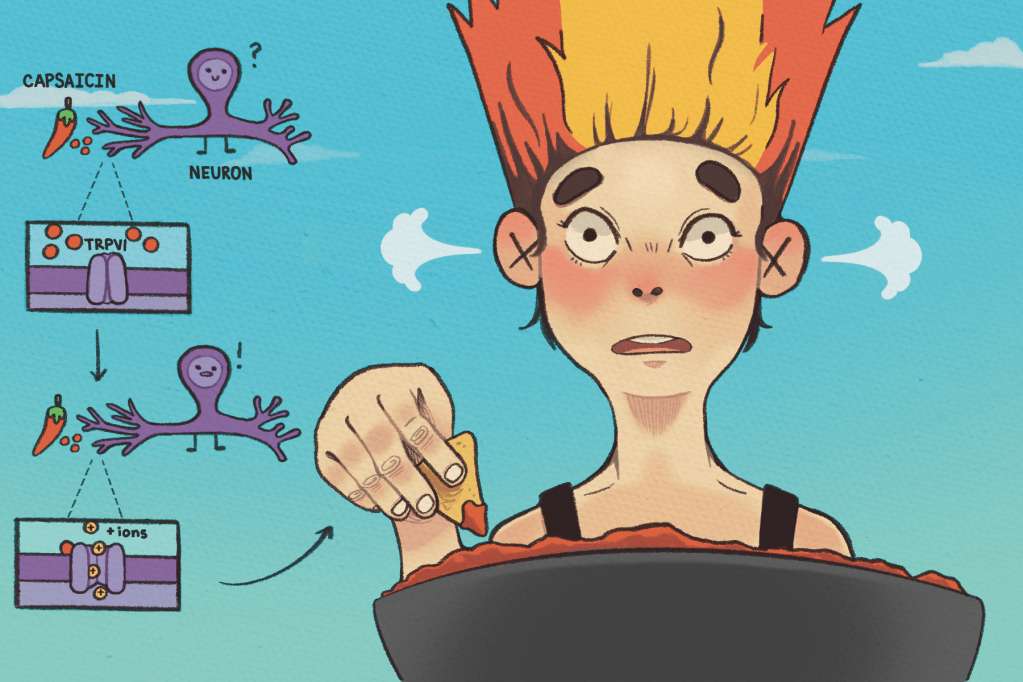 It was not magic that made the burning sensation slowly fade. This phenomenon – called neuronal desensitization – occurs when sensory neurons that express TRPV1 become less responsive to capsaicin after repeated exposure.10 This is similar to when you enter a cold pool. At first, you might feel a lot of discomfort, but eventually your body becomes accustomed to the temperature and your cold-sensing neurons stop firing.